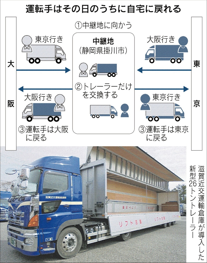 長距離トラック運転手が日帰り 滋賀近交運輸 中継地で荷物交換 日本経済新聞
