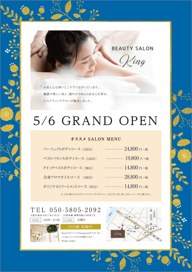 サロンオープン開業チラシ作成 エステ販促ツール パンフレットポスター印刷