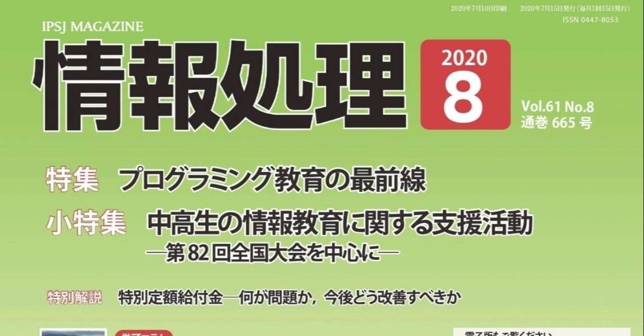 情報処理年8月号別刷 特集 プログラミング教育の最前線 の最新号 雑誌 電子書籍 定期購読の予約はfujisan