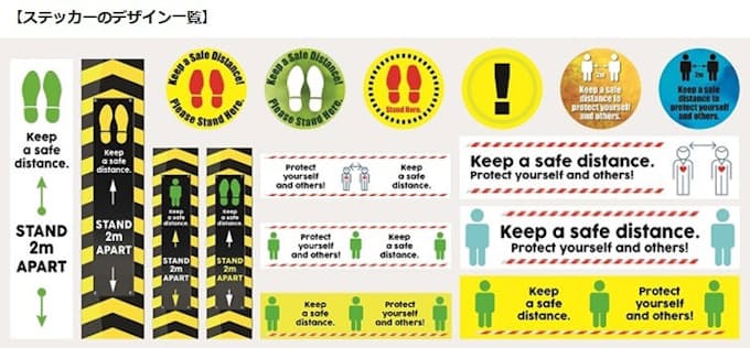 フリーカットステッカー ソーシャルディスタンスのイラストステッカーをオリジナルでプリント 商店街 町内会のテンプレート作例詳細 オリジナルプリント