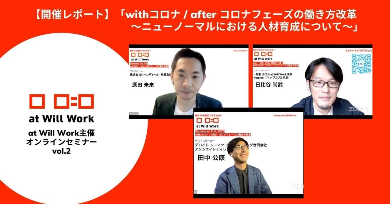 参加費無料 At Will Work主催オンラインセミナーのご案内 Withコロナ After コロナフェーズの働き方改革 ニューノーマルにおける人材育成について イベント情報 Loandeal