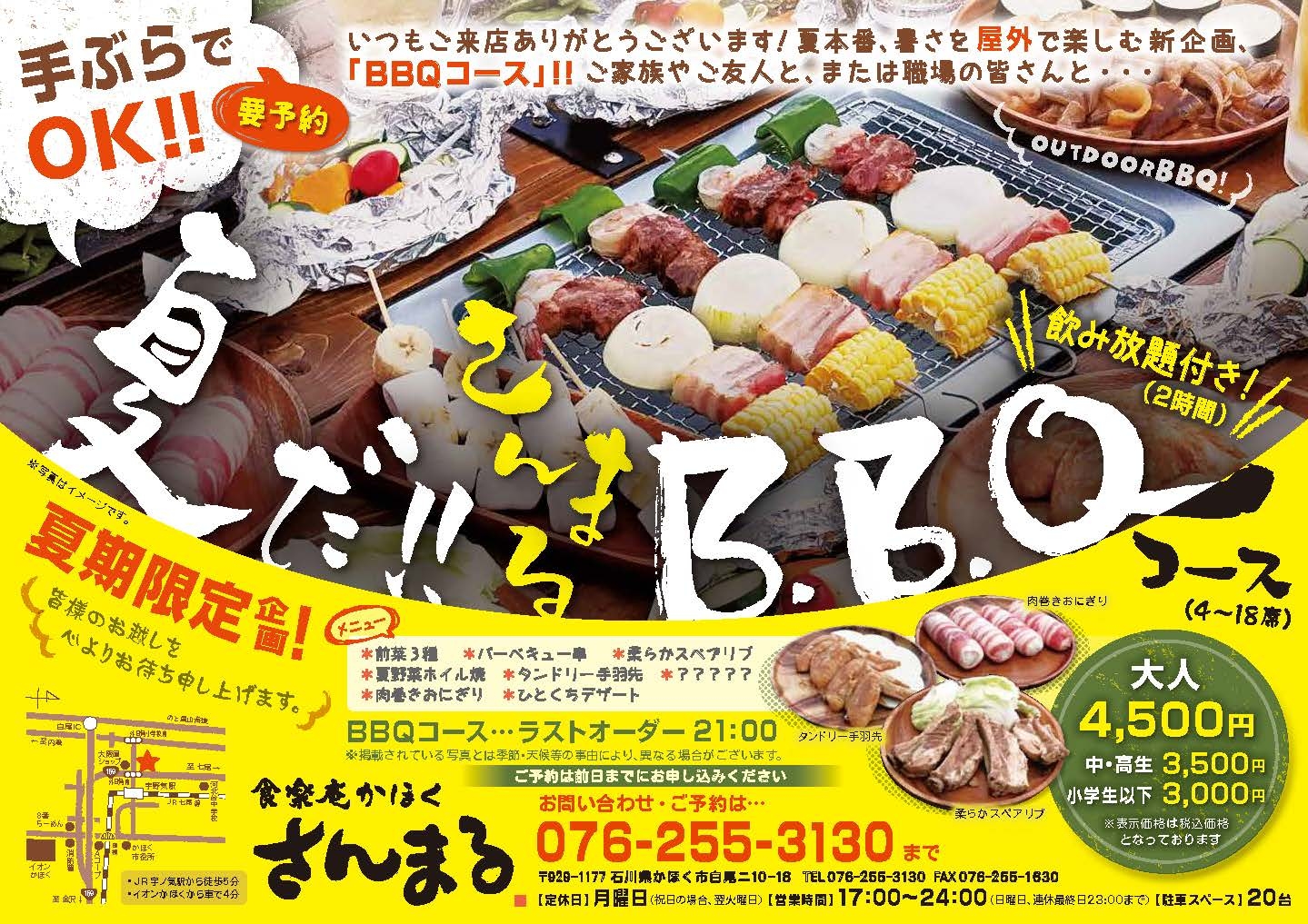 当社でさんまる様のbbqチラシを作成させていただきました